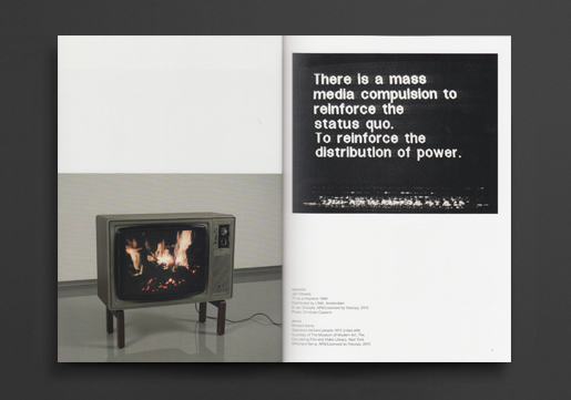 Artists: Cory Arcangel (US), Dara Birnbaum (US), Chris Burden (US), Ian Burn (AU), Antoinette J. Citizen (AU), Simon Denny (NZ), Jan Dibbets (NL), Aleksandra Domanović (SI/DE), Harun Farocki (DE), Benjamin Forster (AU), Isa Genzken (DE), Greatest Hits (AU), Martijn Hendriks (NL), Lynn Hershman Leeson (US), Matt Hinkley (AU), Jenny Holzer (US), Edward Kienholz & Nancy Reddin Kienholz (US), Oliver Laric (AT), Mark Leckey (UK), Scott Mitchell (AU), Rabih Mroué (LB), Henrik Olesen (DK), Nam June Paik (KR/US), Nam June Paik & John Godfrey (US), Joshua Petherick (AU), Matte Rochford (AU), Jill Scott (AU), Richard Serra (US), John F. Simon Jr. (US), Brian Springer (US), Hito Steyerl (DE), Ricky Swallow (AU), Jeff Thompson (US), Pia van Gelder (AU), Ulla Wiggen (US) and Dennis Wilcox (AU)