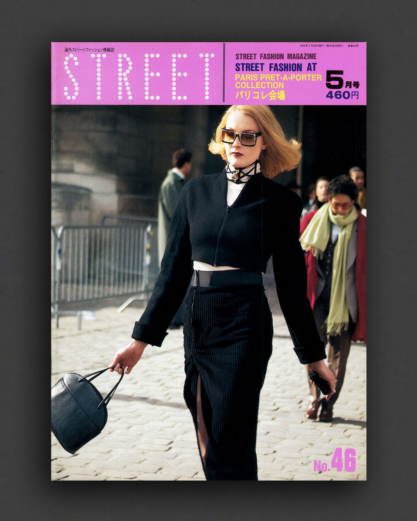 1993 issue of the iconic STREET magazine from Japan. No. 46 "Street Fashion at Paris Pret-a-Porter Collection : May 1993". Every issue is entirely full-bleed pages of photographs by legendary Japanese street style photographer Shoichi Aoki. For this Paris fashion week issue, Aoki directs his attention to the crowds surrounding the Pret-à-Porter shows, capturing the refined, eclectic, and often trend-defining looks of designers, editors, and attendees. Aoki's Street (and later also Fruits) are essential style goldmines, creating valuable photographic documents of the times like no other magazine.