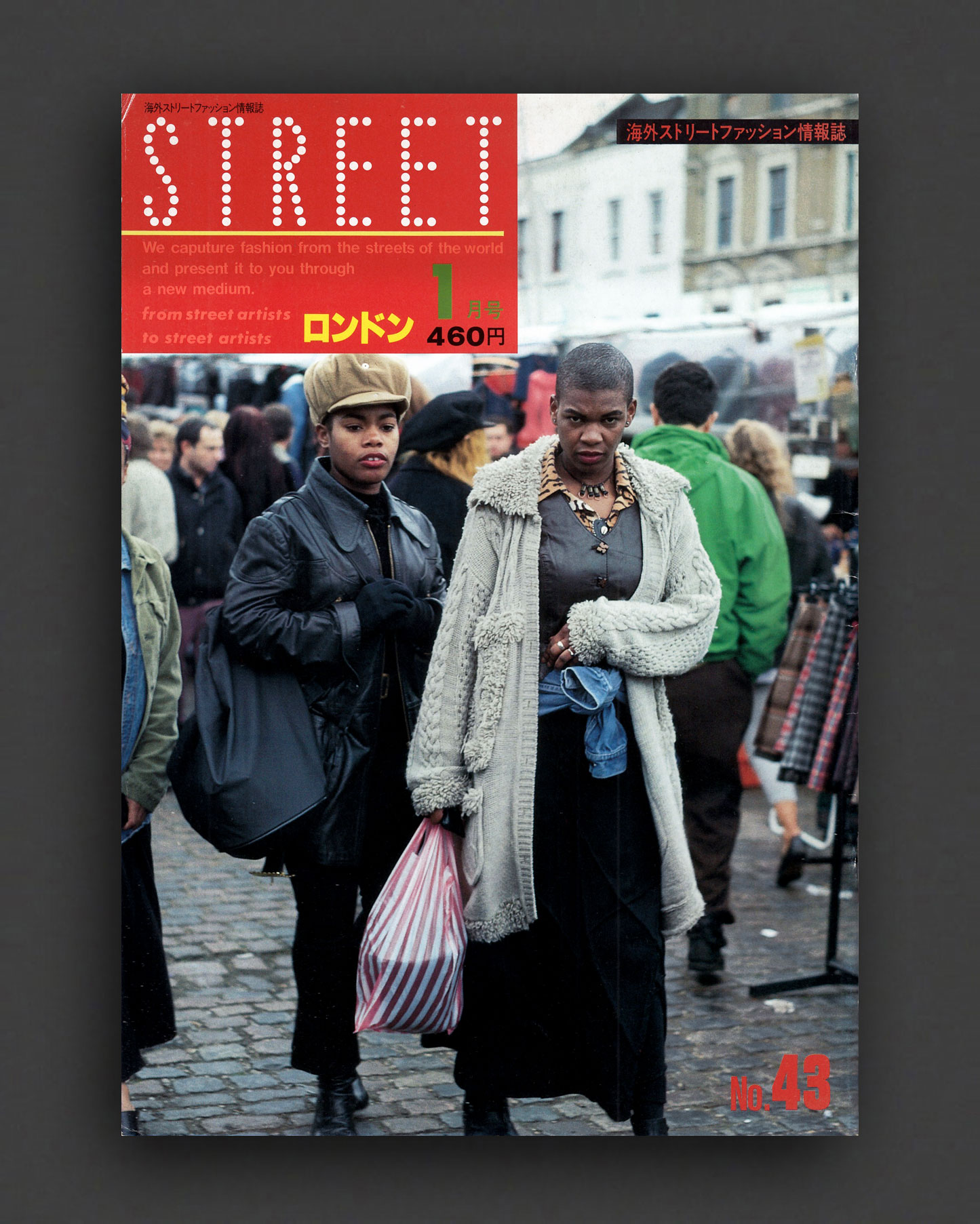 1992 issue of the iconic STREET magazine from Japan. No. 43 "Street Fashion in London : January 1992". Every issue is entirely full-bleed pages of photographs by legendary Japanese street style photographer Shoichi Aoki. For this winter London issue, Aoki captures the layered, personal, and often experimental looks found in the city's streets, focusing on the people who shaped its distinct early-90s fashion identity. Aoki's Street (and later also Fruits) are essential style goldmines, creating valuable photographic documents of the times like no other magazine.