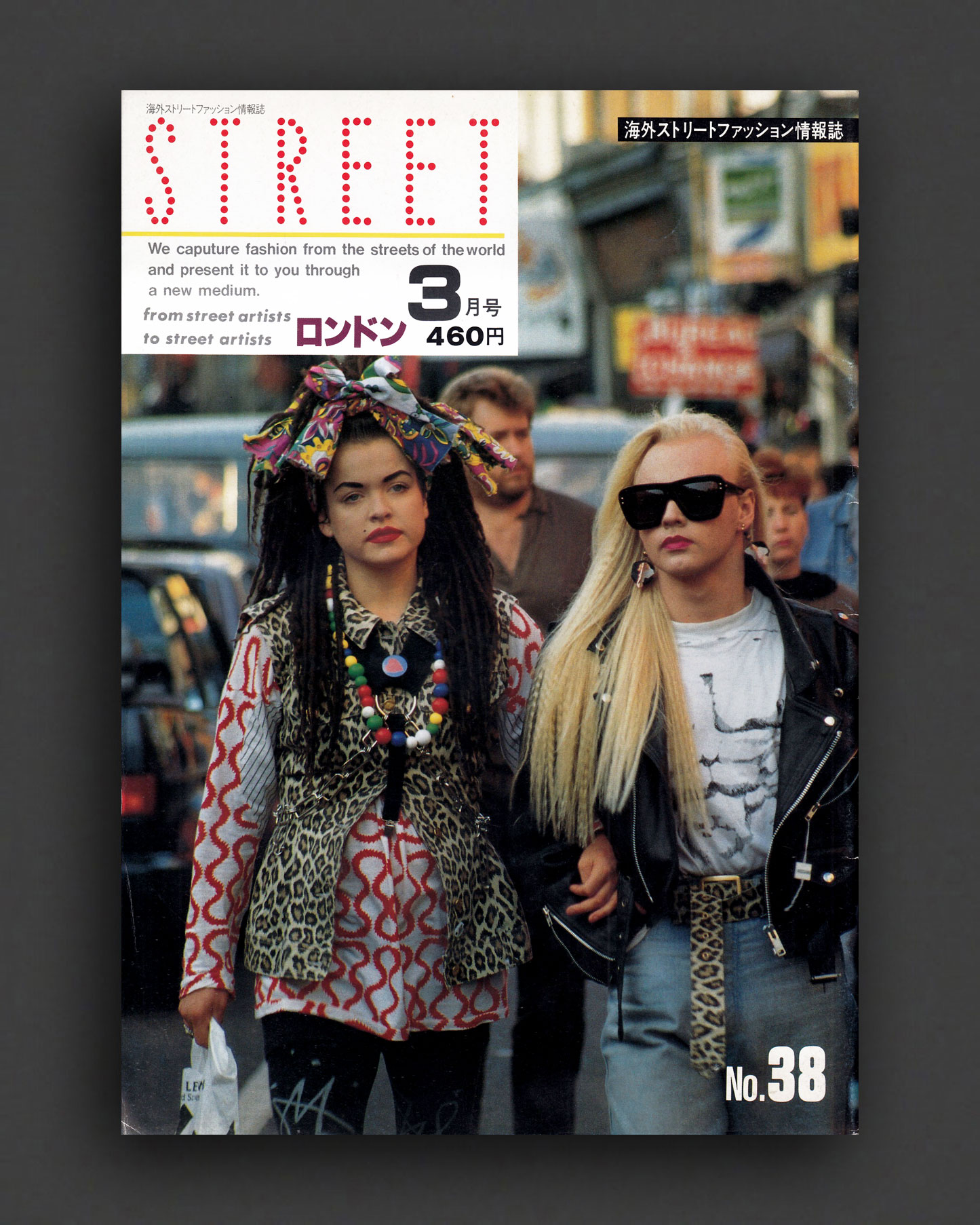 1992 issue of the iconic STREET magazine from Japan. No. 38 "Street Fashion London : March 1992". Every issue is entirely full-bleed pages of photographs by legendary Japanese street style photographer Shoichi Aoki. For this early London issue, Aoki turns his camera to the streets to document the raw, inventive style of the city's youth, creatives, and fashion insiders during a pivotal moment in London's cultural evolution. Aoki's Street (and later also Fruits) are essential style goldmines, creating valuable photographic documents of the times like no other magazine.