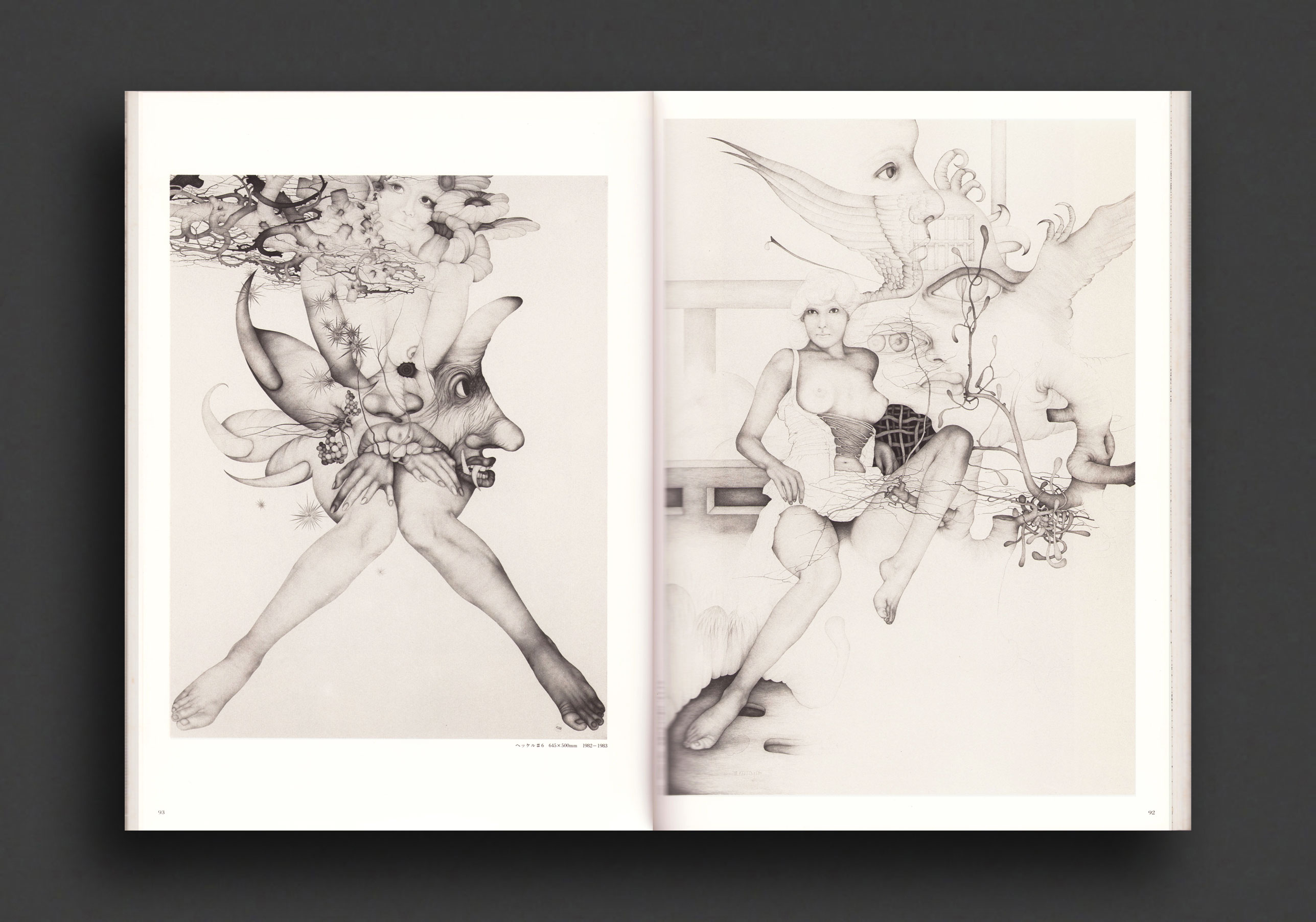 First 1984 edition of this major collection of the flourishing illustrated eros of Japanese artist Keito Joh, whose prolific output throughout the 1970s—1980s depicts sensual naked figures, grotesque, fantastic plants and metaphysical landscapes composed of fine mesh-like lines, similar to porcelain cracks, that are inspired by the veins in leaves. "My childhood friend is nature", says Joh, born in 1946 in Aichi prefecture (Honshu island), whose delicate, organic line-work tames the inner vision of a wild beast. Keito Joh had a troubled youth, but loved music and painting, and during his high school years met painter Masaharu Kondo, who became his mentor and set him on his artistic path. Kondo's vibrant surrealistic abstractions, sharing the expressive intensity of artists such as Friedensreich Hundertwasser and Tarō Okamoto, influenced the work of Joh, but the youths extremely intimate, delicate threads unify his wild thickets of naked metamorphosing flesh and flora in a matrix of interlocking line, giving his work a distinct quality.