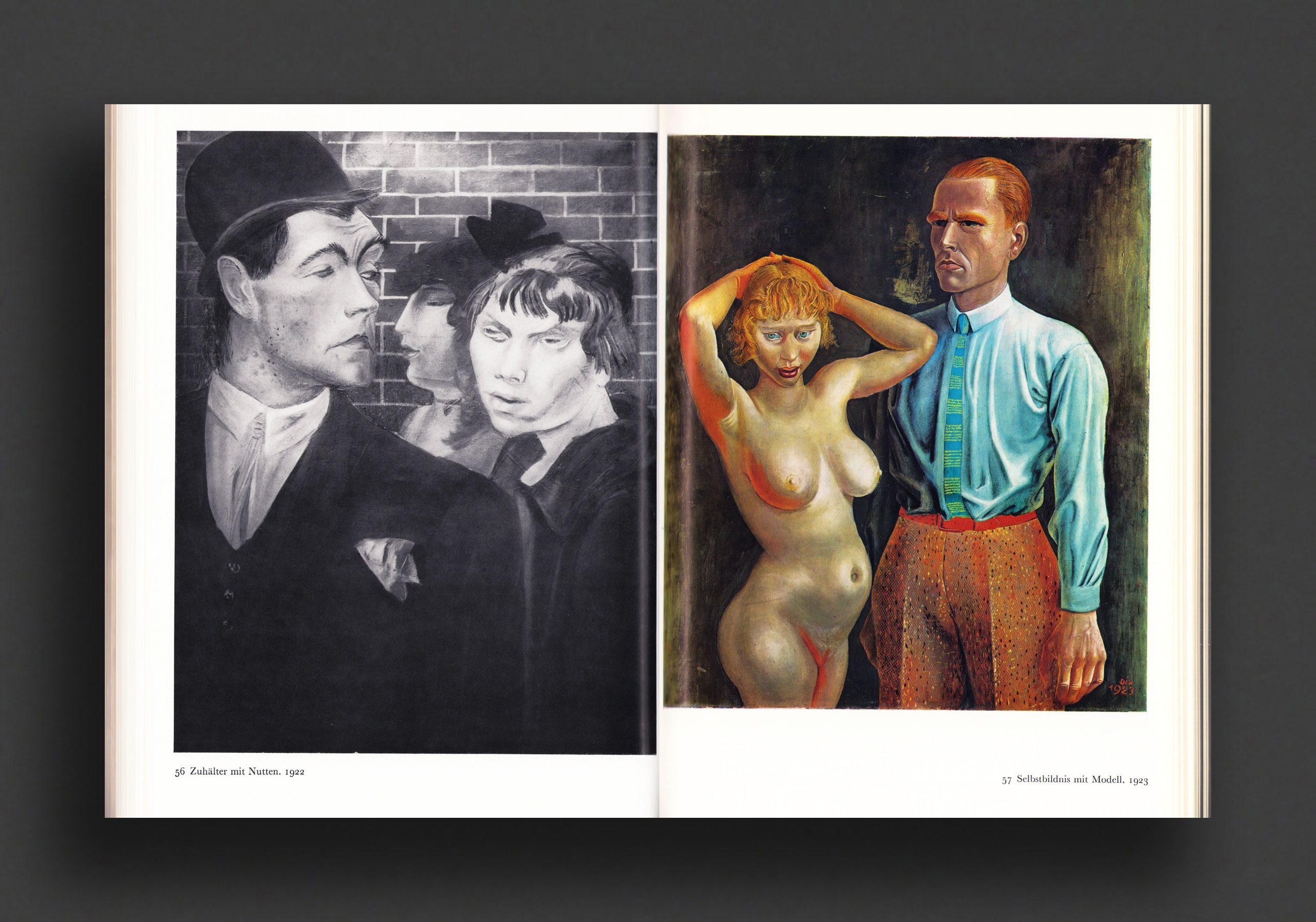 1977 printing of this definitive monographic study of German painter and printmaker, Otto Dix (1891—1969). Written by Fritz Löffler in the original German language, the books presents a large plate section of reproduced paintings and drawings in colour and b/w, including fold-out panels, spanning his entire career. One of the most important artists of the Neue Sachlichkeit (New Objectivity), which also attracted George Grosz and Max Beckmann in the mid 1920s. Dix was noted for his ruthless and harshly realistic depictions of German society during the Weimar Republic and the brutality of war. A veteran haunted by his experiences of WWI, his first great subjects were crippled soldiers, but during the height of his career he also painted nudes, prostitutes, and often savagely satirical portraits of celebrities from Germany's intellectual circles. His work became even darker and more allegorical in the early 1930s, and he became a target of the Nazis, defining Dix as one of Germany's most 'degenerate' artists. Through his art, he had committed a 'violation of the moral sensibilities' of the nation and forced to promise to paint only inoffensive landscapes. His paintings that were considered "degenerate" were discovered in 2012 among the 1500+ paintings hidden away by the son of Hitler's looted-art dealer Hildebrand Gurlitt.