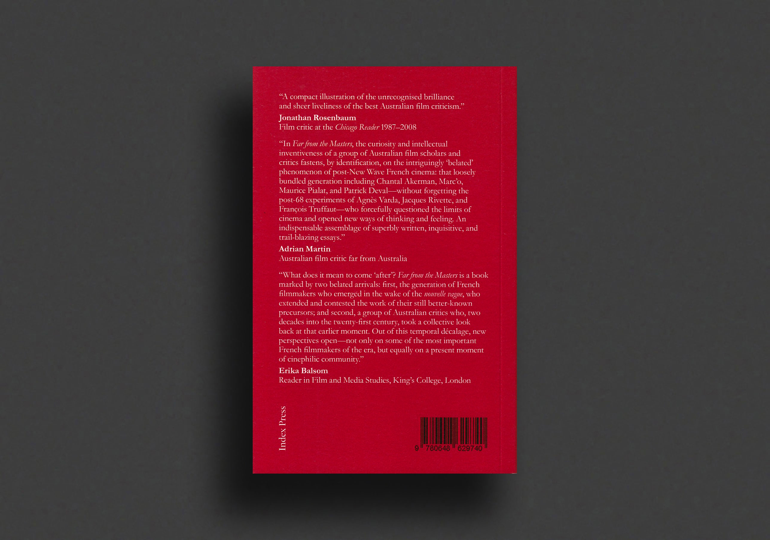 “What does it mean to come “after”? Far from the Masters is a book marked by two belated arrivals: first, the generation of French filmmakers who emerged in the wake of the nouvelle vague, figures like Maurice Pialat, who extended and contested the work of his still better-known precursors; and second, a group of Australian critics who, two decades into the twenty-first century, took a collective look back at that earlier moment. Out of this temporal décalage, new perspectives open—not only on some of the most important French filmmakers of the era, but equally on a present moment of cinephilic community.”—Erika Balsom, Reader in Film Studies at King’s College, London