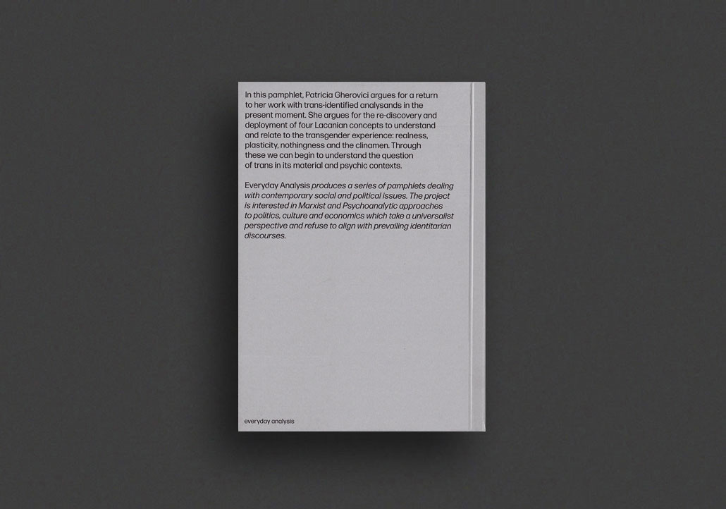 Offering a new twist to philosophical references the author discussed in Transgender Psychoanalysis (2017). Taken together, these four clusters of concepts provide a foundation for Gherovici’s thinking about psychoanalysis. She rethinks Lacan’s notions of the Real, the nothing, the endless transformations of the body that pertain to plasticity, the clinamen, the death drive - all of which are shown to be key to her understanding of the trans experience as revealed in her clinical practice.
