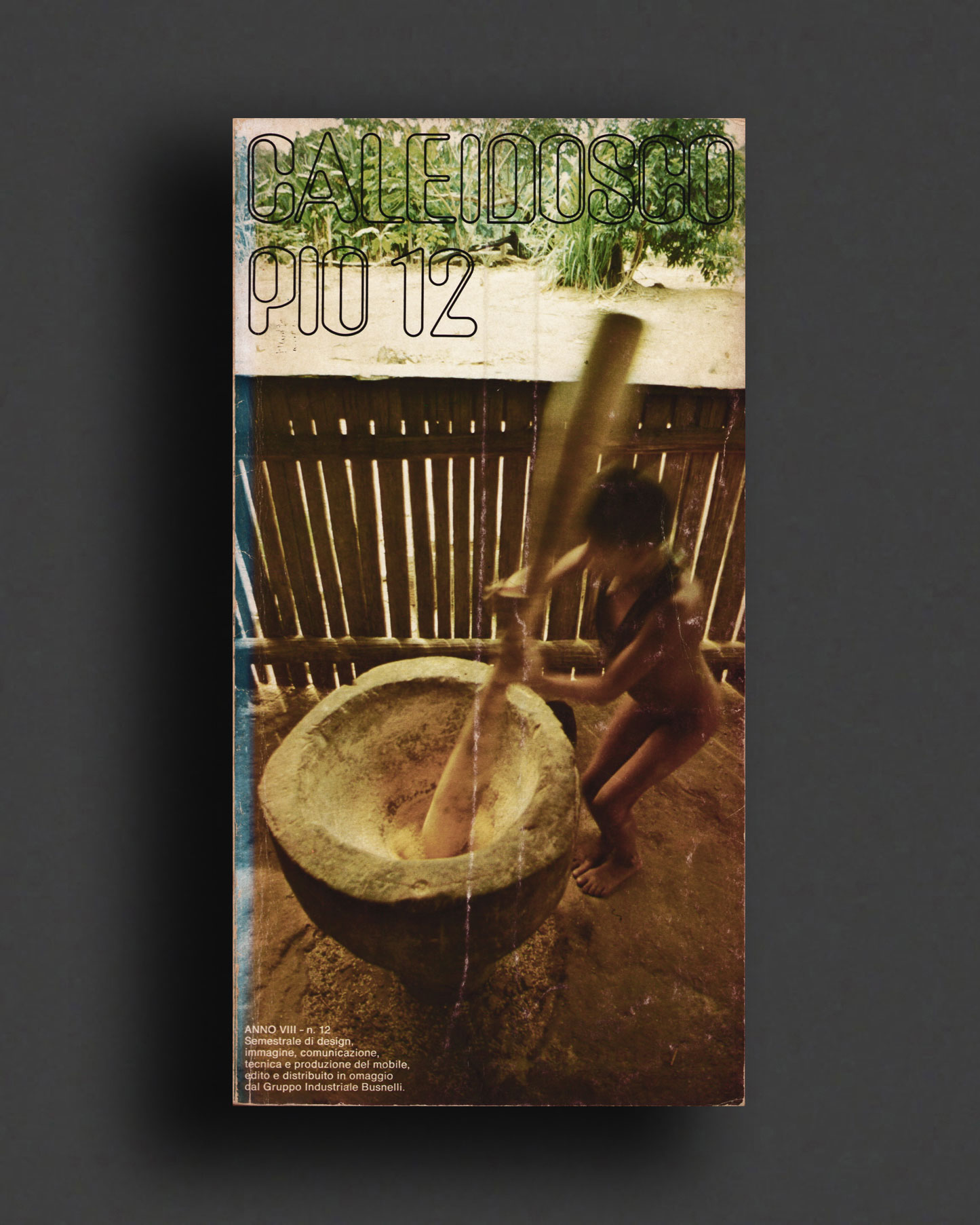 Scarce early 1972 issue of the excellent Italian magazine Caleidoscopio, "a semi-annual magazine on furniture design, image, communication, technology, and production (...) distributed free of charge". Edited by Fernanda Gaslini, with excellent graphic design and art direction by Marco Sbernadori, after the master Gianni Sassi, profusely illustrated in colour and b/w, including articles by Vilfredo C. Agnese, Giancarlo Salvioli, Giulio Crespi, Roberto Ubaldi, Franco Busnelli, Fulvio Cinti, Arturo Ferrarin, Carlo Mauri, Sergio Carpinelli, Pia Soli, Arturo Belloni, Enrico Crespi, Mario Perego.
