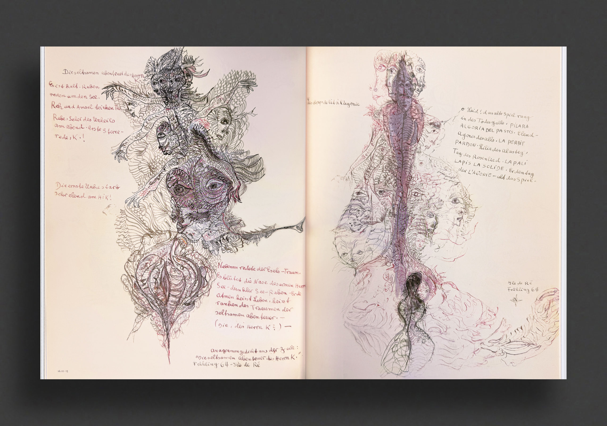The incredible first monograph that doubles as an artist's book of work by Hungarian New York-based artist Rita Ackerman spanning the years 1993—1996, edited and designed by Makoto Ohrui from Fiction Inc., published by Rockin' On in 1997 and only available in Japan. Long out-of-print, this numbered hardcover volume, with illustrated vellum dust jacket, is illustrated profusely with seventy of Ackerman's drawings, paintings and collages throughout in colour and b/w with many fold-outs and notebook scans, accompanied by essays.