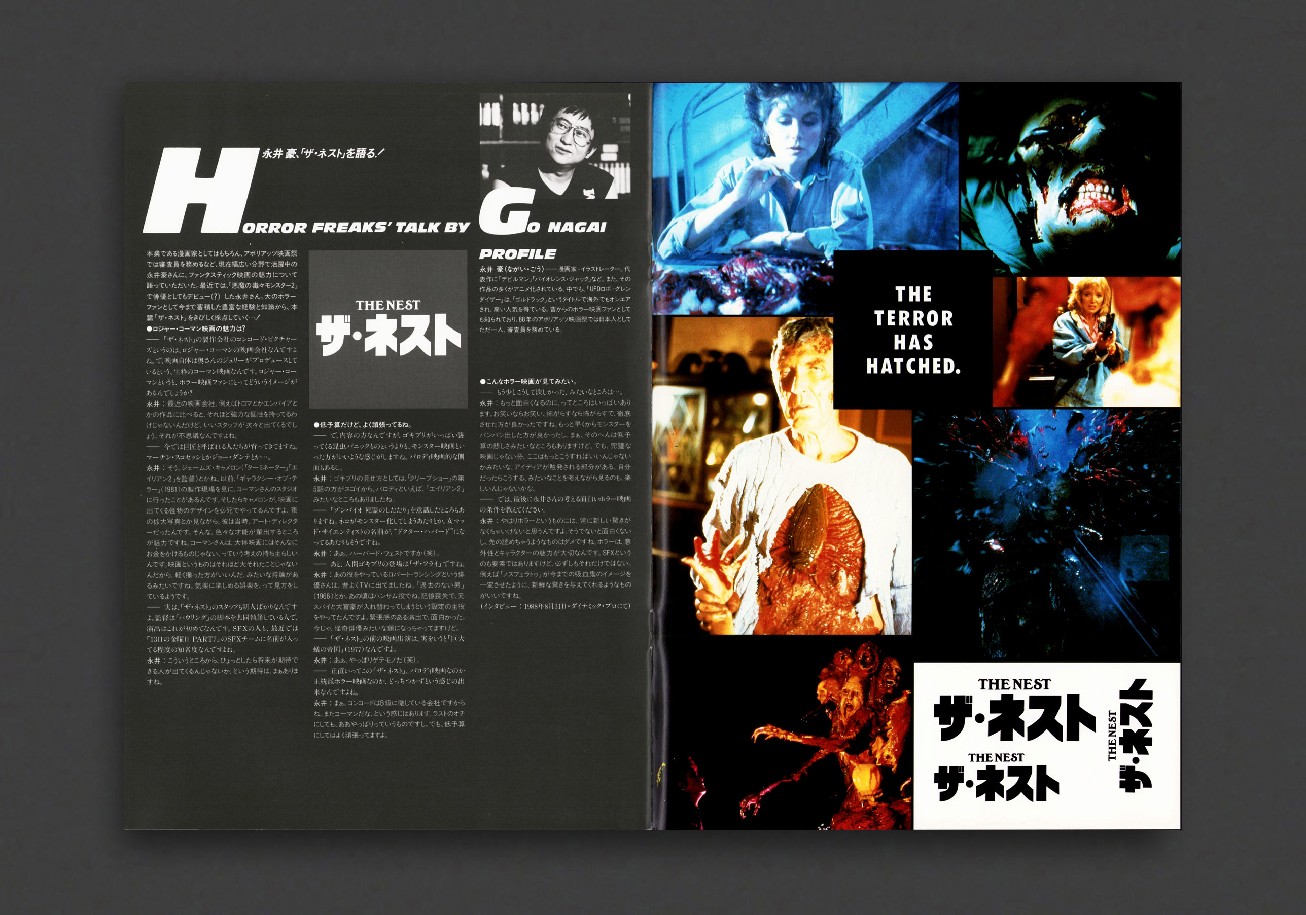 Japanese souvenir photo booklet for Poltergeist II: The Other Side (also known simply as Poltergeist II) the 1986 American supernatural horror film directed by Brian Gibson, a direct sequel to Tobe Hooper's masterpiece Poltergeist (1982). Featuring JoBeth Williams, Craig T. Nelson, Oliver Robins, Heather O'Rourke and Zelda Rubinstein reprising their roles from the first film, plus Will Sampson, Julian Beck and Geraldine Fitzgerald, the second entry in the Poltergeist film series follows the Freeling family who again finds themselves under attack from the supernatural forces led by "the Beast", the monstrous, biomechanical entity manifesting from the spirit of the evil preacher Reverend Henry Kane, designed by surrealist artist H.R. Giger, famous for the Alien xenomorph. Giger's dark, biomechanical style was applied to Kane's manifestations, including the "Vomit Creature" and the massive "Great Beast" that appears in the astral plane, a design realized by effects artists. Heavily illustrated throughout with glossy colour and b/w stills from the film, alongside texts in Japanese about the film, cast, and production information.